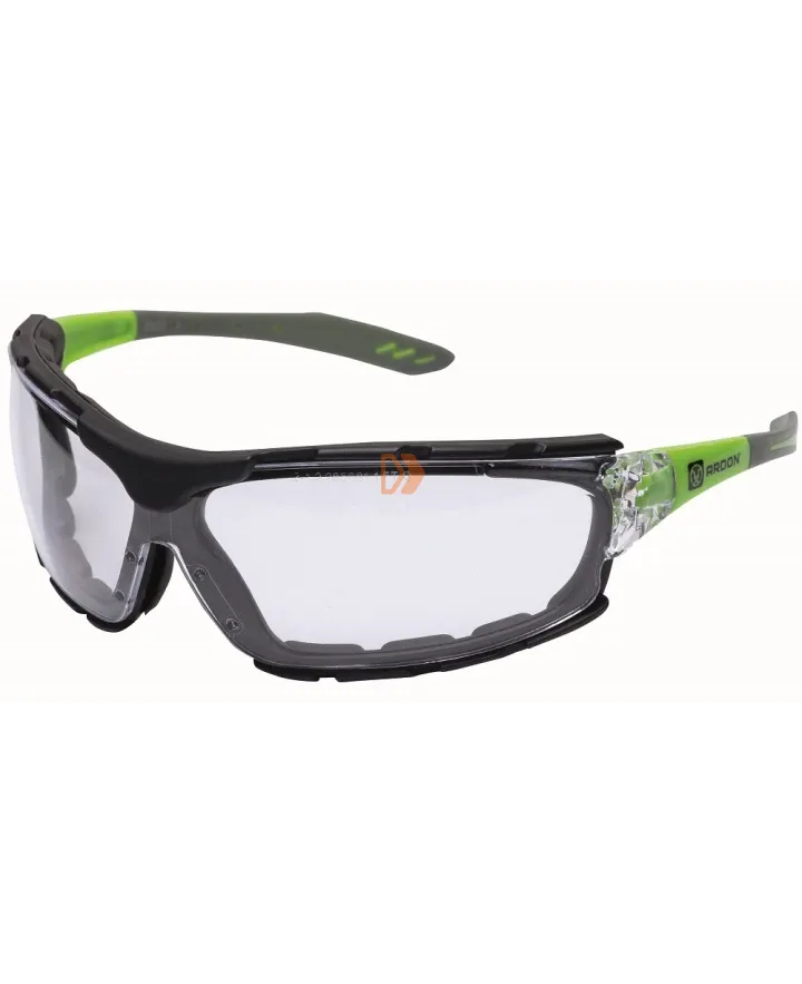 Könnyű védőszemüveg, amely puha EVA habbal bevont belső lencse peremmel, puha szárvégekkel, puha szellőző orrnyereggel, polikarbonát lencsével (2 - 1,2 1 FT O jelöléssel), nejlon szárakkal, páramentesítő és karcálló kezeléssel és UV-szűrővel rendelkezik.