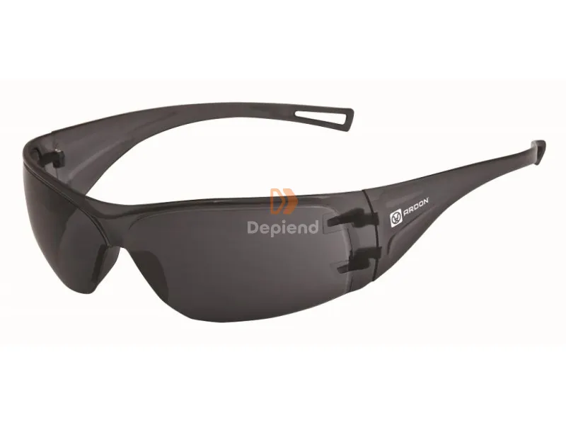 Rendkívül könnyű védőszemüveg. Keret nélküli design. Az egy darabból készülő panorámalencse tökéletesen illeszkedik minden arctípushoz, polikarbonát szárak. Tartózsinór rögzítő nyílások a szárak végén. Integrált orrnyereg, mindössze 22 g súlyú. MO: FT. Lencsejelölés: 5 - 3.1 1 FT O. Lencsekivitel: UV-szűrő, nem párásodó, karcolásálló kivitel. A lencse színe: füst.