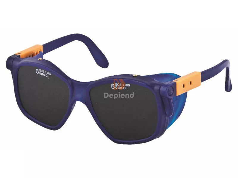 Modern formatervű stílusos védőszemüveg, lágyított rugalmas szárak, állítható szemüveg dőlésszög sötét, számérték 4-8. Lencsejelölés: 1 S, lencsekivitel: UV szűrő, a lencse színe: füstös. 4-es méret: Kisebb méret, ami keskenyebb arcú vagy kisebb fejméretű emberek számára készült. 5-ös méret: Közepes méret, amely az átlagos fejformákra ideális így férfiak és nők egyaránt viselhetik. 6-os méret: Nagyobb méret, amely a szélesebb arcformákkal és nagyobb fejmérettel rendelkezők számára ajánlott.