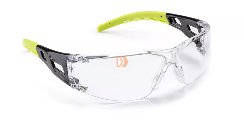 Nagyon könnyű (23g) és kényelmes kialakítás • N: páramentes jelölés (EN166) • AS: karcmentes felület • Szellőző oldalvédelem • Hajlékony és önbeállító szár • Puha, csúszásbiztos és állítható orrnyereg • Polikarbonát lencse: 2,0 mm • Keret: PC + PVC • Szár: PC + PVC • Csomagolás: 10/120