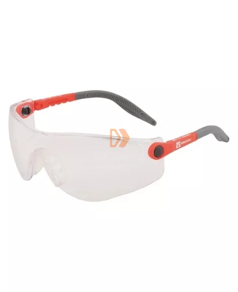 Klasszikus védőszemüveg modern kivitelben, 4 pozícióba állítható oldalhosszal, állítható oldaldőléssel és nagy látómezővel. Puha, átlátszó és csúszásmentes orrhíd kiváló viselési kényelmet garantál egész nap, az oldalak puha végei hornyokkal rendelkeznek, amelyeknek köszönhetően a szemüveg tökéletesen illeszkedik és nem csúszik. A szemüveg UV szűrős, páramentesítő kezelést és karcolásgátló kezelést kapott. A lencse jelölése 2 - 1,2 1 FT O.