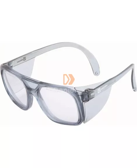 Hagyományos kialakítású védőszemüveg polikarbonát kerettel és oldalakkal, integrált oldalsó borítással, UV szűrővel, páramentesítő kezeléssel és karcolásgátló kezeléssel rendelkezik és magas fokú védelmet nyújt. A lencse jelölése 2 - 1,2 1 FT O.