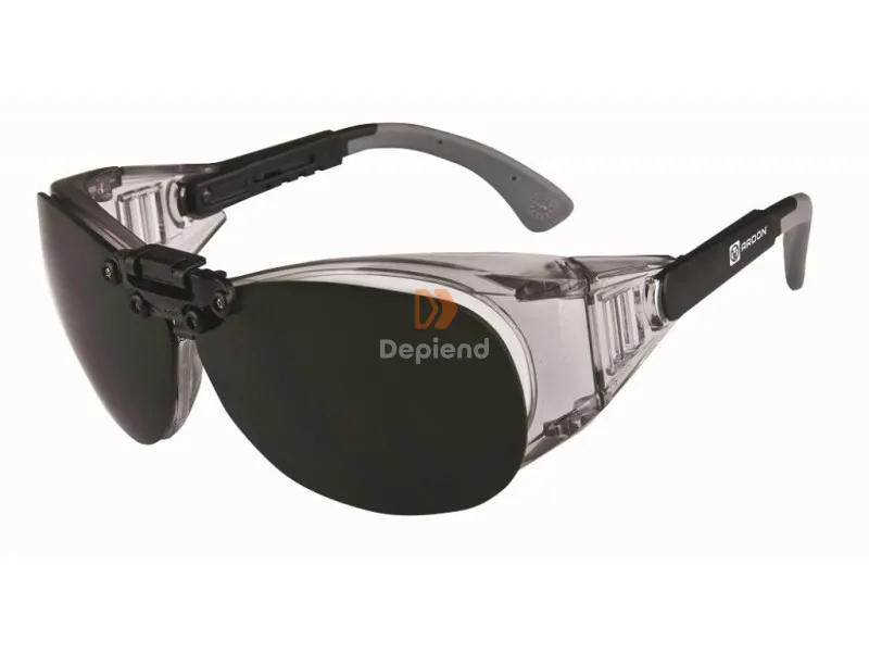 Kétlencsés védőszemüveg. Átlátszó, felhajtható 5. sz. hegesztőlencsék. Masszív keret nehéz munkakörnyezetbe. Az oldalszellőzés lehetővé teszi a levegő keringését. Állítható szárhossz (3 lehetséges hossz). Állítható szemüveg dőlésszög. A szárak gumivégei megakadályozzák a szemüveg lecsúszását a forró munkakörnyezetben. MO: F. Lencsejelölés:2 - 1.2 1 FT O (átlátszó), 4 - 5.1 F O IRS (hegesztő). A lencse színe: átlátszó + hegesztő.