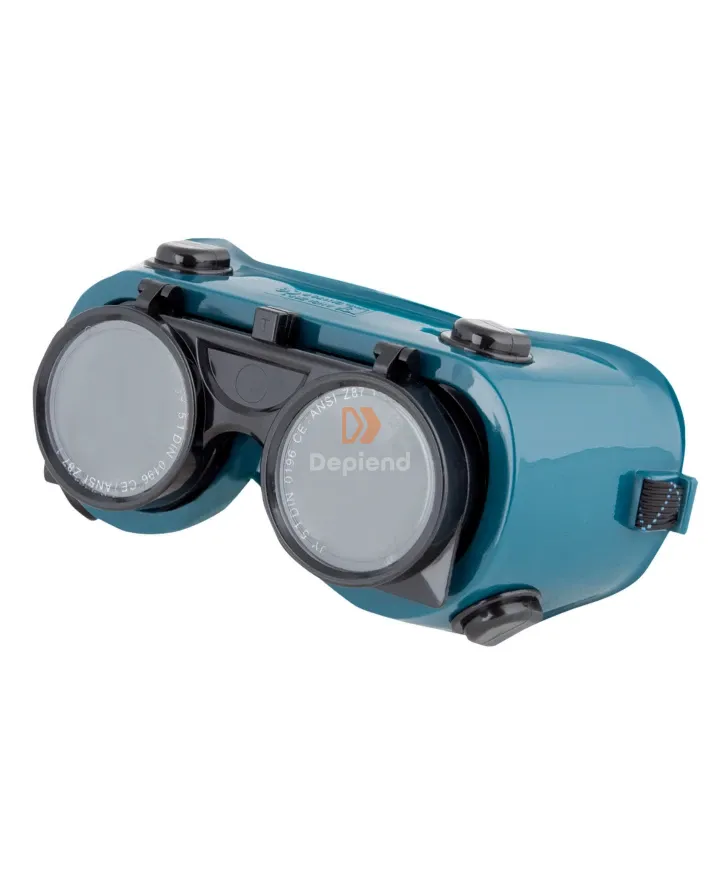 Zárt hegesztő védőszemüveg, amely PVC kerettel, közvetett szellőzéssel, felhajtható átlátszó No. 5 hegesztő lencsével (1 F (átlátszó), 5 1 DIN 0196 (hegeszthető) jelöléssel), állítható fejpánttal és ABS lencsetartóval rendelkezik.